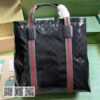 NO.2024440191。 《配全套原厂绿色礼品袋》GG水晶帆布中型托特包。 GG水晶帆布魅力演绎男士系列配件,亮泽表面和耐用特性为品牌经典设计注入当代风格。经典红绿织带让这款托特包魅力更添。黑色GG水晶帆布,黑色皮革滚边,红绿罗缎织带,尼龙衬里,一个拉链袋