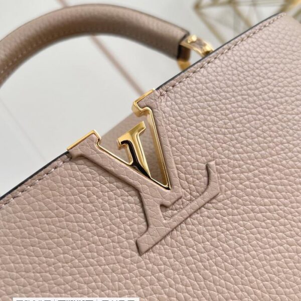 采用棉质与亚麻混纺帆布制成,细密织纹在自然色调节中引人注目。棉质与皮革结合的可拆卸肩带环绕包体,打造出环形视觉效果,肩带上设有两个带孔,可调整长度,以便作为手提包、肩背包或斜背包使用。内设复古银色金属扣环开合。包体略微加垫,内建配套可取出皮革小袋,并以袢带固定。前部装饰对比鲜明的 Loro Piana 浮雕徽标,皮革加固包底。