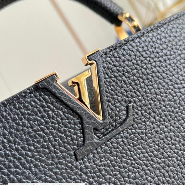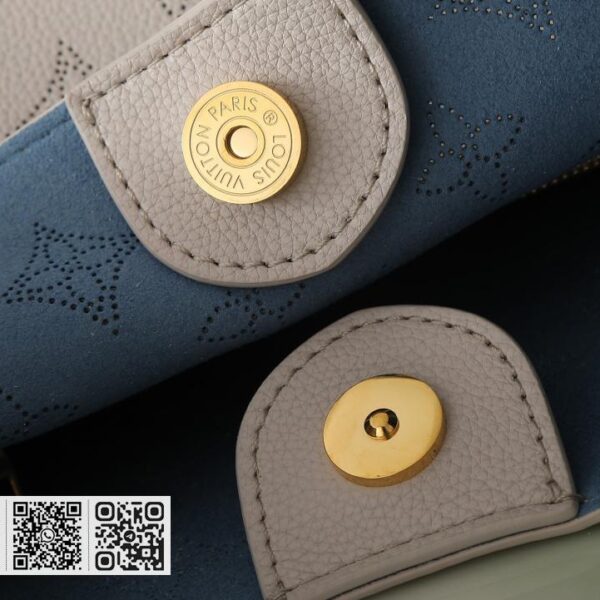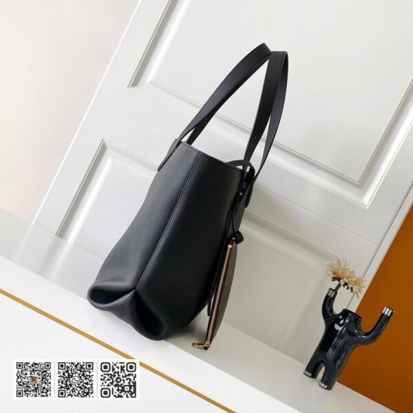 采用小牛皮制作的包身,拥有十分柔软的自然粒面,光滑的表面与新颖细节、珠宝般的金属开合相得益彰。棉质与皮革结合的可拆卸肩带环绕包体,打造出环形视觉效果,肩带上设有两个带孔,可调整长度,以便作为手提包、肩背包或斜背包使用。内设复古银色金属扣环开合。包体略微加垫,并采用柔软绒面革衬里,内置配套可取出皮革小袋,采用袢带固定。前部装饰对比鲜明的 Loro Piana 浮雕徽标,皮革加固包底。