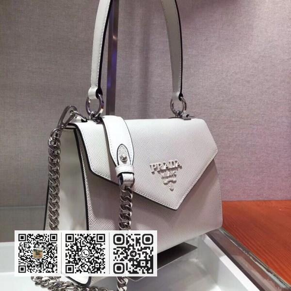 Prada 白色 Saffiano 皮革单色顶部提手包