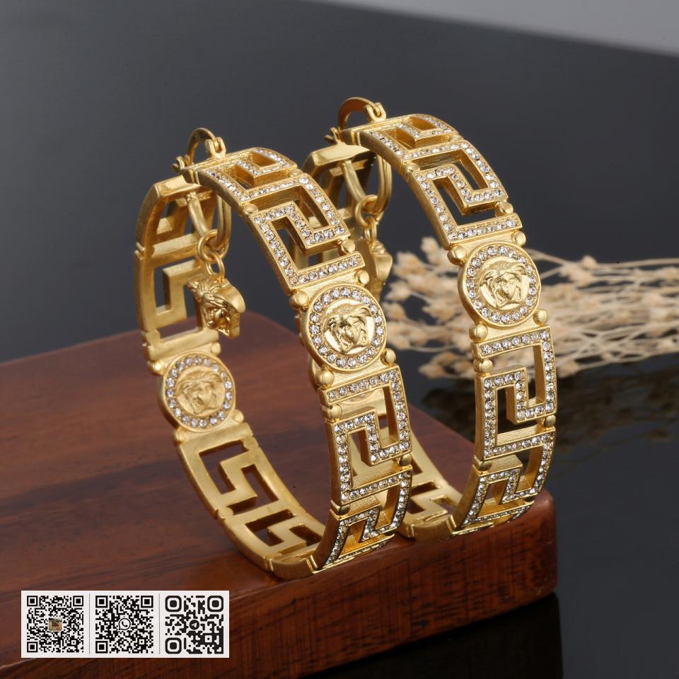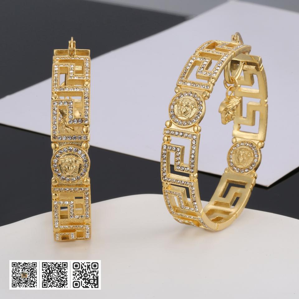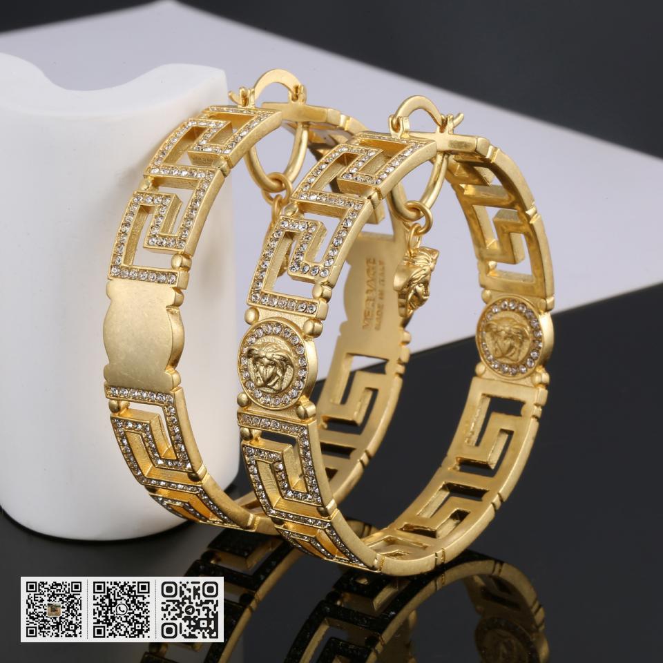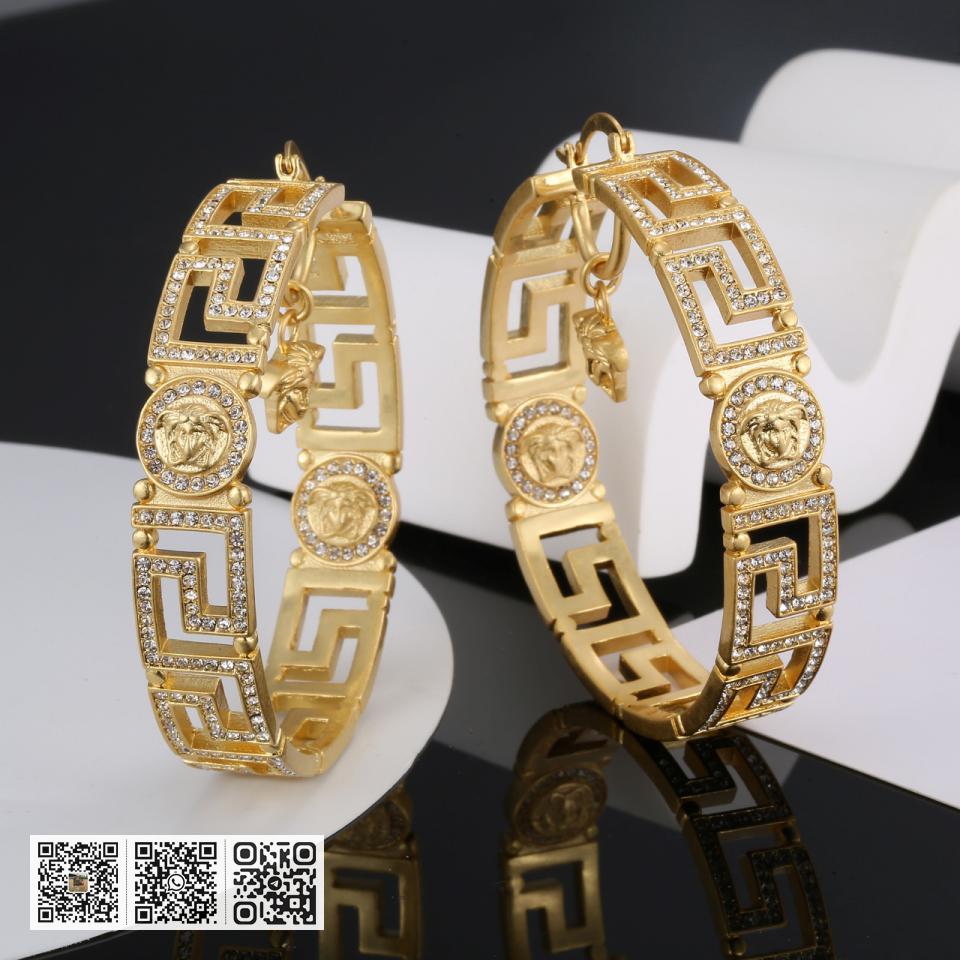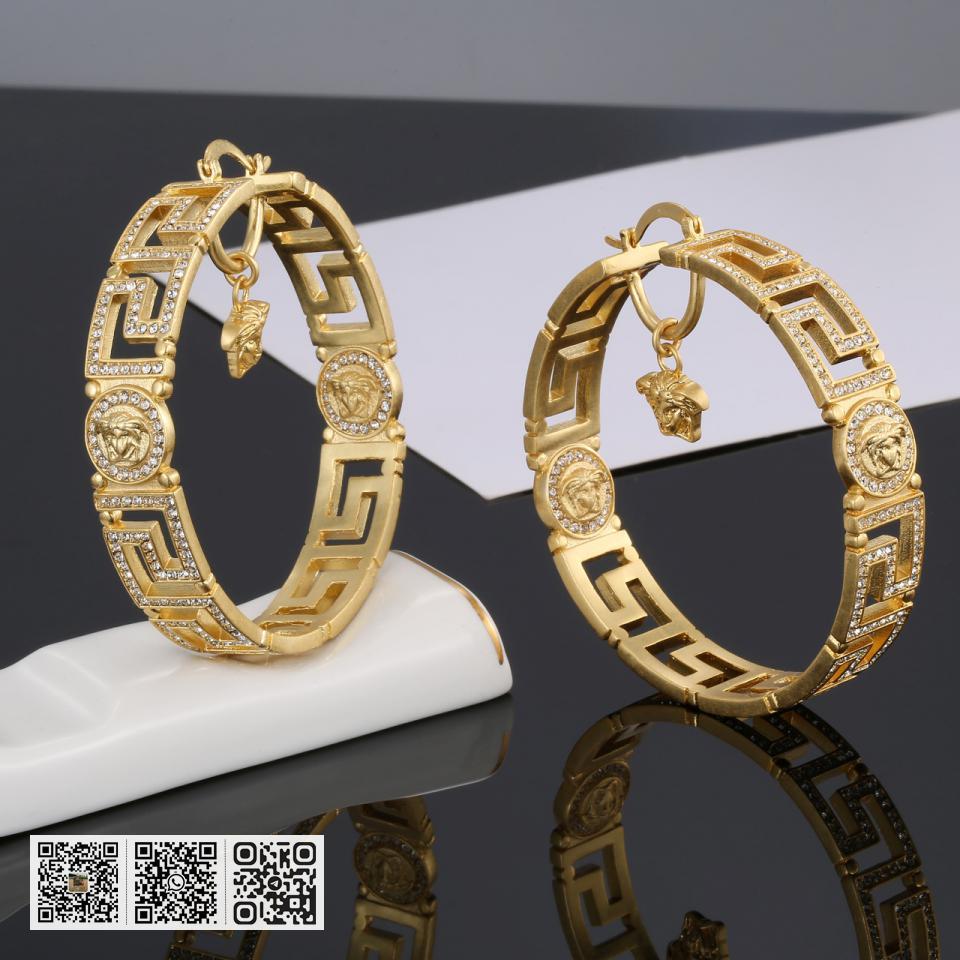 NO.202495310 范思哲Versace美杜莎人面浮雕花藤蔓纹大圈灵动V标金属质感耳环 黄铜材质镀金